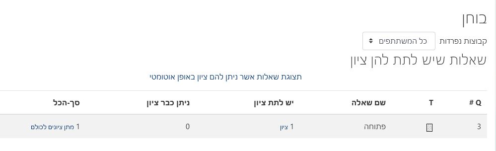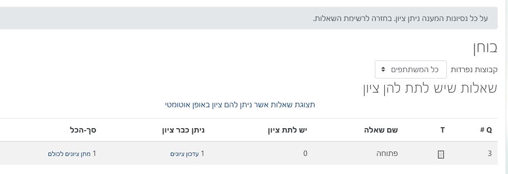 You can view students' answer attempts in several ways, depending on the type of quiz you want to perform and the way the questions are placed in the quiz. For a quiz with randomly placed questions from a database, you can check more conveniently from the "Random Question Summary" option in the "Results" tab. Please see instructions and explanations on the subject at this link: https://moodle24.technion.ac.il/mod/page/view.php?id=119165.