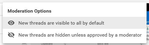 The content owner (the recording lecturer) can decide whether all discussions will be published to all viewers immediately or will undergo pre-filtering (they will reach him first, and then he will decide whether to approve publication).