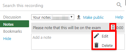 You are invited to watch a short video tutorial on using Panopto's notes.