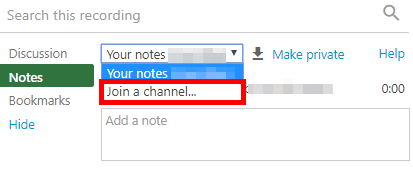 2. Notes for learners and/or teaching staff: Gives viewers the ability to type notes while watching the recording, on the same page. Notes appear with a timestamp, along with the corresponding part of the recording. Notes can be shared with all those who have access to the recording or saved privately. Notes can be shared in channels (e.g. teams and learning groups).